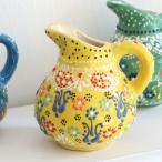 トルコ陶器 ミルクピッチャー 花瓶 高さ10×直径10cm フラワーデザイン イエロー