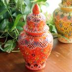 トルコ陶器 蓋つき壺 高さ25×直径11cm フラワーデザイン オレンジ