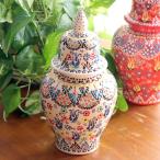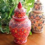 トルコ陶器 蓋つき壺 高さ25×直径11cm フラワーデザイン レッド