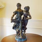 アンティーク ブロンズ像 置物 Auguste Moreau オーギュスト モロー作「ふたりの少女 花摘み」オブジェ 大理石 送料無料 ビンテージ