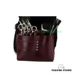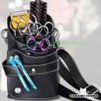 シザーバック PUバッグ 美容師専用バッグ 美容院 トリマー ハサミ 5丁 ベルト付き 専用 収納バッグ ワンタッチ固定 はさみ、ヘアクリップ ブラシなどの収納