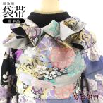 中古 正絹 袋帯 振袖用 成人式 着付け練習 六通柄 水色 紫 長さ440cm 幅31cm リサイクル 和装 礼装 フォーマル 着物リサイクル帯 送料無料 即日発送