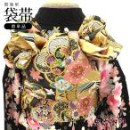 中古 正絹 袋帯 振袖用 成人式 着付け練習 六通柄 黒 金 長さ425cm 幅31cm リサイクル 和装 礼装 フォーマル 着物リサイクル帯 送料無料 即日発送