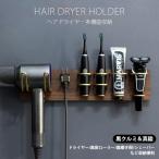 天然木製 ヘアドライヤー シェーバー 美容ローラー 電子歯ブラシ 歯磨き2個 ホルダー ブラケット バスルーム 壁掛け 黒クルミ ラック 北欧モダン おしゃれ