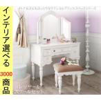 ドレッサー 93×40.5×135cm 木製 姫系 三面鏡タイプ 本体・椅子セット インドネシア製 ホワイト色 YC8500040185