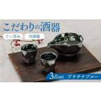 ふるさと納税 食器・グラス お猪口・ぐい呑み・盃 岐阜県 瑞浪市 美濃焼 つばめ工房 黒土 酒器 3点セット プラチナブルー 瑞浪市 / 大恵 陶磁器 ぐい呑み ギ…