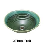 おしゃれ 洗面ボウル 置き型 埋め込み グリーン 和風 手洗い器 美濃焼 磁器製 手洗い鉢 沙羅 織部(Lサイズ φ380)
