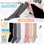 ハイソックス 靴下 5足セット レディース UVカット 足ケア 涼感 薄手 無地 綿 ハイ シャリ感 夏春秋 滑り止め おしゃれ 無地