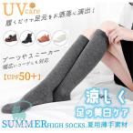 ハイソックス 靴下 レディース UVカット 足ケア 涼感 薄手 無地 綿 ハイ シャリ感 夏春秋 滑り止め