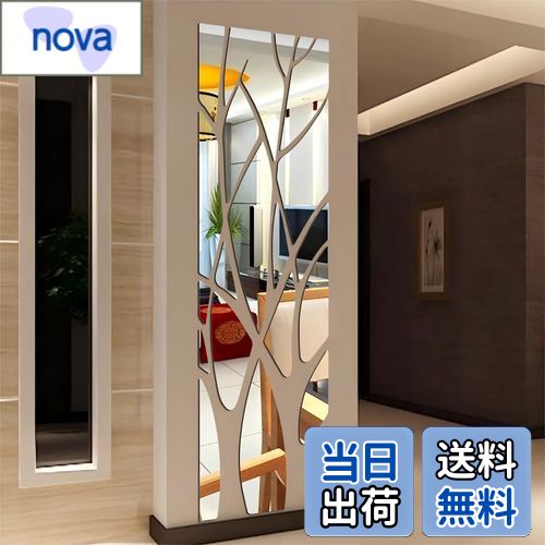 FLORPERRY ウォール ステッカーミラー ァッション羽/木の形 3D アクリルウォールステッカー 割れない鏡 ウォールデカール DIY アクリルウォールステッカー 壁掛け 壁飾り ミラー ステッカー 鏡 粘着テープ付 シルバーウォールステッカー 寝室 居間 玄関 135x37cm 木