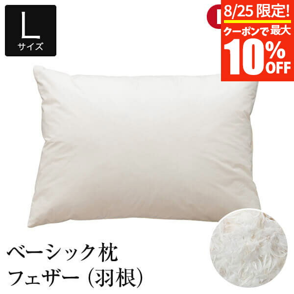 【11/25限定!最大15%OFFクーポン】枕 L 50×70 フェザー100% 綿100% ベーシック枕 日本製 国産 オールシーズン フェザー 羽根 フェザー枕 羽根枕 羽 生成 綿 コットン まくら ピロー 快眠枕 安眠枕