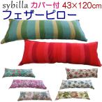 カバー付 日本製 フェザーピロー 羽根枕 43×120cm/サンモト/ボリューム/ホテルまくら/ロング枕/もっちり/抱きまくら/綿100%/シビラ/sybilla/ブランド