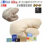 羽毛布団 クイーン ポーランド産ホワイトマザーグースダウン93% 2層キルト 二層 429dp ロイヤルゴールドラベル 日本製 極 スペシャル