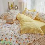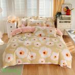布団カバー 棉 シングル 4点セット 掛け布団カバー フラットシーツ 花柄 ピーチスキン加工 枕カバー 寝具カバー 四季適用 羽毛布団カバー 洗える 速乾 保温