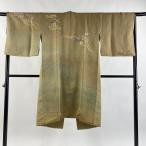 道中着 身丈98cm 裄丈69cm L 和装コート 松 菊 薄茶色 正絹 名品 中古