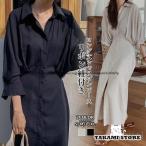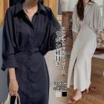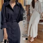 シャツワンピース ロング ワンピース レディース シャツ ロングワンピース ロング丈 ロングシャツワンピース ゆったり 体型カバー 二の腕カバー ウエストマーク