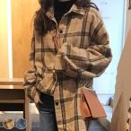シャツ レディース 長袖 秋冬 アウター トップス ロング カジュアル チェック ゆったり 羽織 ドロップショルダー