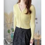 カーディガン 軽やかに羽織れるデイリーニットシンプル映え♪ リブVネックニットカーディガン レディース