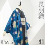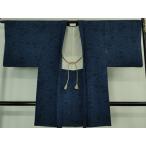 平和屋着物#極上 長羽織 藍染 型染 流水花文 羽織紐付き 反端付き 逸品 DZAB3013kh6