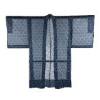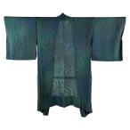 美品 羽織 身丈104cm 裄丈64.5cm M 幾何学 青 正絹 逸品 中古
