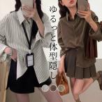 コーデュロイ シャツ ブラウス レディース トップス 長袖 羽織 微起毛 ストライプ ゆったり オーバーサイズ 前後アシンメトリー