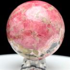 インカローズ ロードクロサイト 約64.5mm珠 丸玉 スフィア アルゼンチン産 台座付き 菱マンガン鉱 球体 原石 タンブル 置物 天然石 パワーストーン