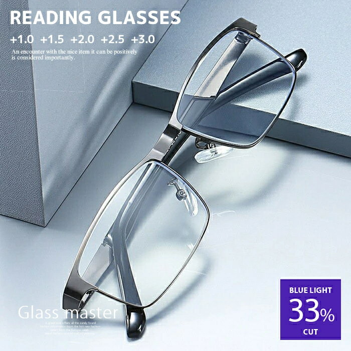 \+0.5~+4.0 細かい度数/ 非球面レンズ 老眼鏡 ブルーライトカット メンズ メガネ ビジネス フレーム 柔らかいリーディンググラス スクエア おしゃれ 男性用 PC パソコン スマホ ブルーライトカットメガネ シニア グラス かっこいい 老眼鏡めがね 老眼眼鏡 【Maestro】