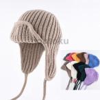ニット帽 ニットキャップ ソリッドカラー 耳あて付き フライト ニット キャップ レディース