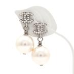 シャネル CHANEL ピアス ココマーク ラインストーン フェイクパール A17V シルバー メタル アクセサリー フランス製 Aランク 中古 美品