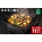 【ふるさと納税】【定期便】【1ヶ月毎11回】ホルモン鍋セット 計11セット(1セット×11回) 牛内臓肉 うどん 200g×2パック お肉 牛肉 味噌だれ 味噌ダレ 炒め煮 ミックスホルモン 冷凍 国産 福岡県 香春町 送料無料