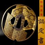 敬逢 名品 刀装具 特別貴重小道具認定書 屏風透鐔 金象嵌銘 梅龍軒清辰(印) 鉄地 肉彫地透 金象嵌 所載同手品 京献上大鍔 TSSI-1