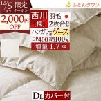 羽毛布団 ダブル 西川 2枚合わせ 西川掛布団カバー付 ハンガリー産グース90% DP400 増量1.7k 綿100%生地 1年中 日本製 肌布団は