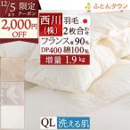 羽毛布団 クィーンサイズ 西川 2枚合わせ 増量1.9kg 西川掛布団カバー等特典付 フランス産ホワイトダウン90% DP400 綿100% 日本製