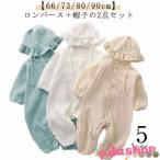 ロンパース 帽子付き 2点セット ベビー ダブルガーゼ ロンパース 長袖 コットン 綿 ベビー服 男の子 女の子 前開き カバーオール 赤ちゃん 新