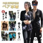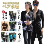 水着 メンズ レディース 体型カバー フィットネス水着 ラッシュガード セパレート UVカット 大きいサイズ 長袖 5点/3点セット 前開き 水陸両用 吸汗速乾