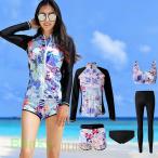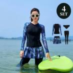 体型カバー 水着 レディース 長袖ラッシュガード 4点上下セット M-5XL 大きいサイズ フィットネス水着 セパレート タンキニ レギンス ママ水着 20代 30代 40代 5