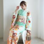 振袖 レンタル 成人式 21点セット レトロ 振袖 成人式セット 花 水色系 正絹 ミントとオレンジソルベ
