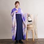 袴 レンタル 卒業式 18点セット レトロ紫ぼかしに古典花 正絹振袖 はかま フルセット 豪華 紫 大学生 レディース 女性 袴91cm 足袋プレゼント