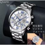 2 腕時計 時計 ステンレス ベルト 日付 カレンダー クォーツ アナログ 革 メンズ オシャレ ウォッチ フォーマル 入学式 卒業式 男女兼用 シルバー
