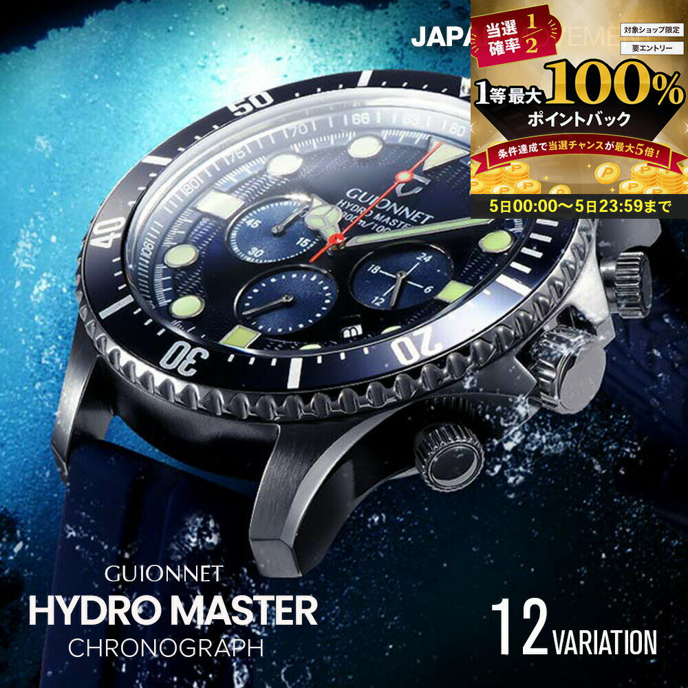 【5日限定★エントリーで最大100%ポイントバック!当選確率1/2 】 腕時計 メンズ メンズ腕時計 メンズウォッチ 男性用 ギフト プロダイバー ダイバーズウォッチ クロノグラフ ブランド 時計 大人 おしゃれ ビジネス 防水 電池式 ハイドロマスター プレゼント GUIONNET ク