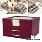 リングイヤリング時計ワインレッド用ガラス蓋付きシックなジュエリーオーガナイザー