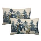 【並行輸入品】ブルー 冬 トナカイ 腰用枕カバー 12X20インチ シロクグマ エルク 松 木 雪 鳥 装飾 枕カバー 水彩画 森 鹿 スロー