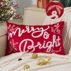 【並行輸入品】Baccessor クリスマス刺繍スローピローカバー 12x20インチ レッドベルベット枕カバー メリーブライトソフト腰枕カバー