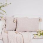 【並行輸入品】WOHUILAIL 装飾天然コットンリネン腰枕カバー 12x20インチ ボヘミアンファームハウス ニュートラルピローカバー タッセ