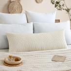 【並行輸入品】Nasigoreng クリーム装飾スロークッションカバー 14x36インチ コーデュロイ腰枕ケース ストライプ スプリングクッショ