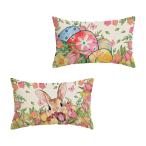 【並行輸入品】ZAEW 水彩 バニー エッグ チューリップ 花 ウサギ イースター 腰 枕カバー 2枚セット 装飾 ファームハウス ホーム ソフ