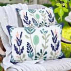 【並行輸入品】kittmin 刺繍入り屋外装飾用クッションカバー 2枚セット 12x20インチ コットン ボタニカルフローラルクッションケー