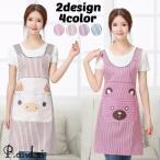 エプロン H型 レディース 肩掛け 胸当て 腰紐 ポケット 家事 仕事 作業用 炊事 料理 キッチン 日用品 雑貨 ストライプ ぶた ブタ くま クマ