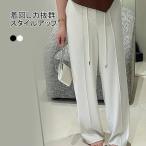 ワイドパンツ レディース ロングパンツ ハイウエスト ガウチョパンツ ストレート フェイクポケット ボタン パンツ ズボン ボトムス スタイルアップ