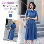 ワンピース レディース 春夏 ロング丈 デニムマキシ丈 40代 デニムワンピ きれいめ 半袖 着痩せ シンプル リゾート 腰紐付き 通勤 OL シャツワンピ 大人 上品